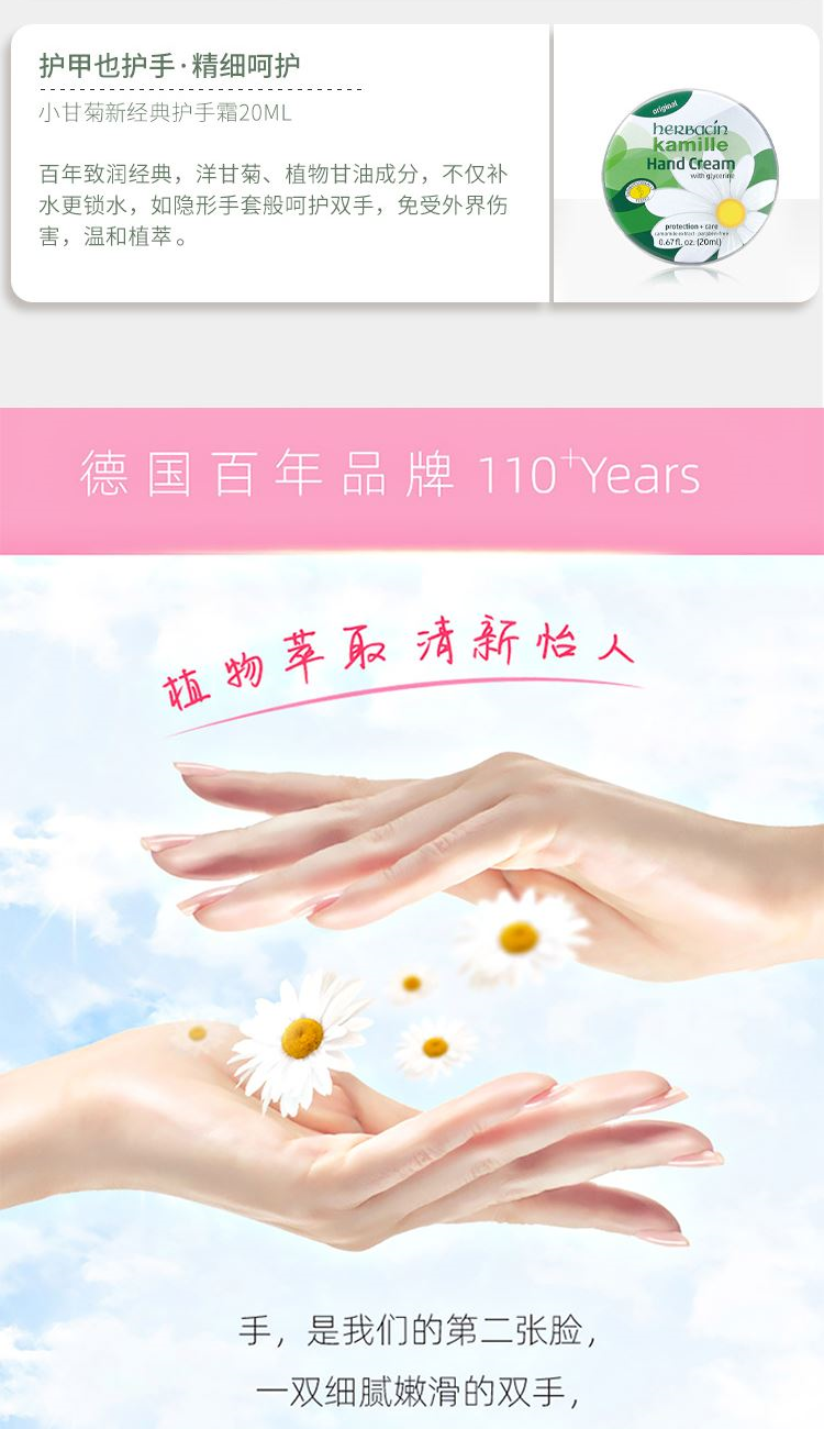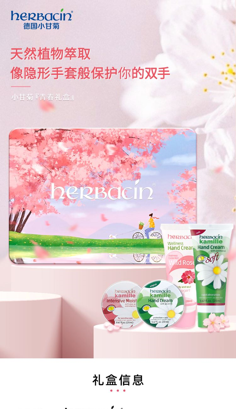 产地:德国 规格:玫瑰护手霜20ml、经典护手霜20ml 特润护手霜20ml、清爽护手霜20ml 功效:滋润手足、抚平粗糙、轻盈舒缓、补水防护、打造细化水嫩肌肤 保质期:4年 适合肤质:所有肌肤 礼盒尺寸:19*13.5*4 cm 条形码: 4013718083650