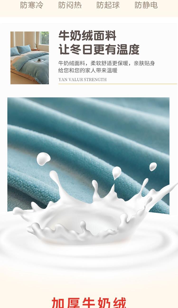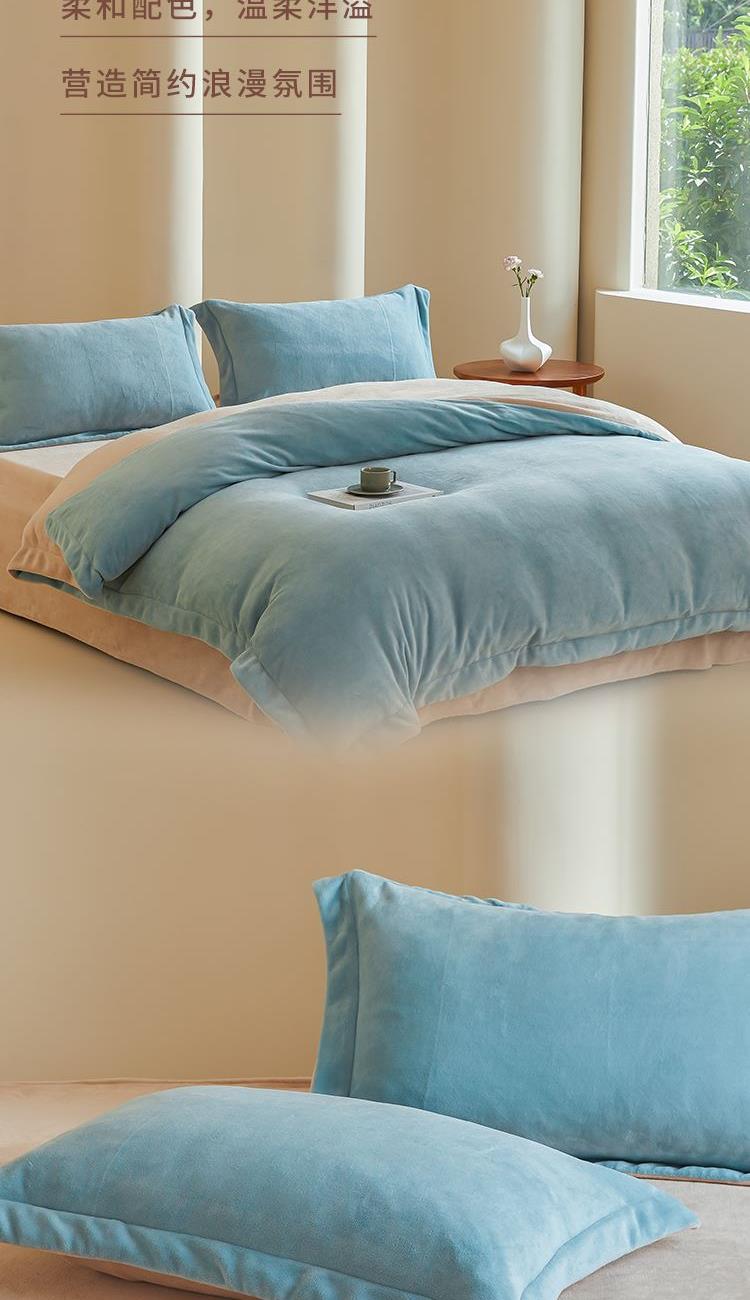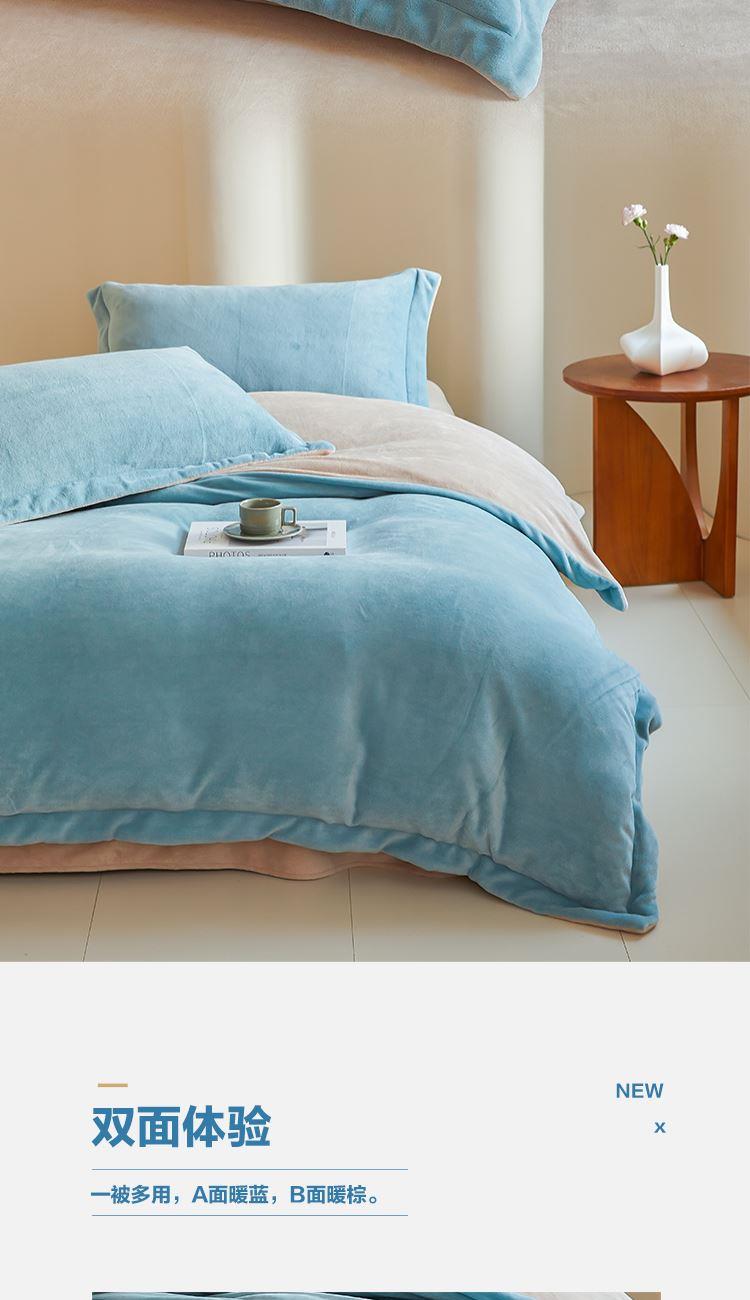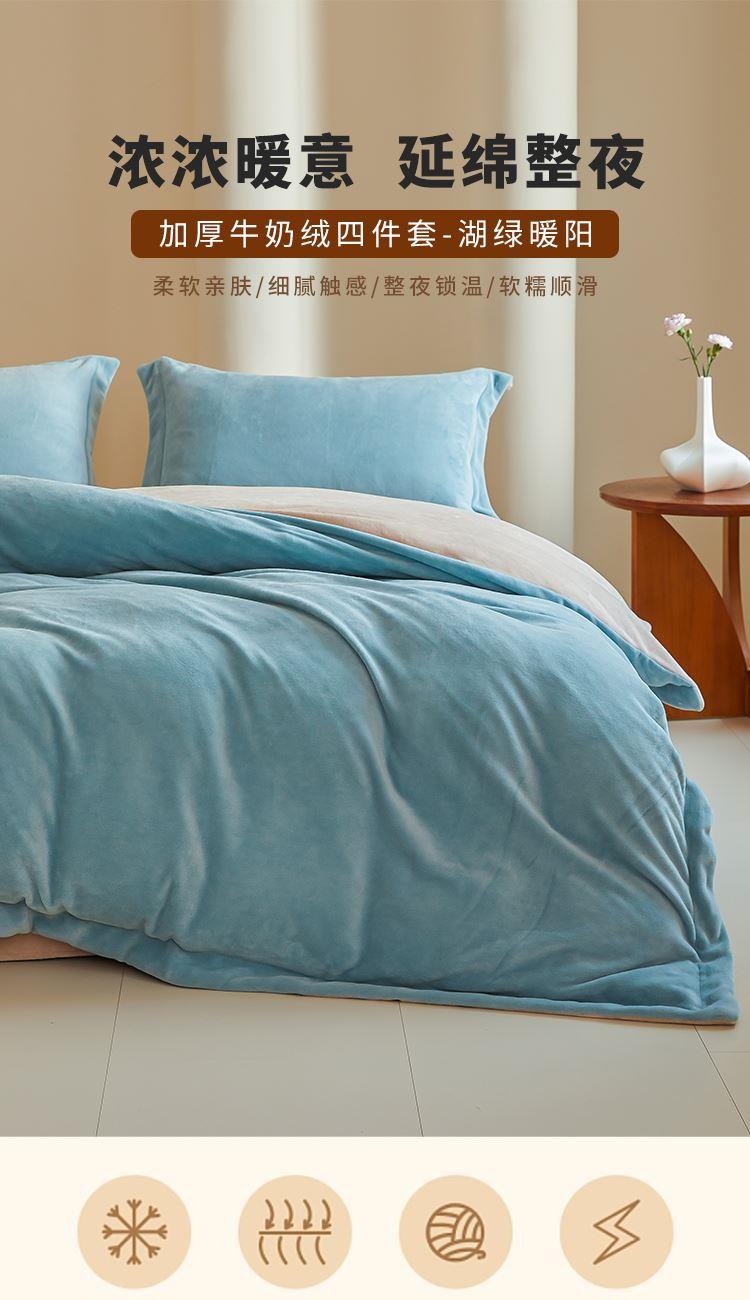 博洋加厚牛奶绒四件套-湖绿暖阳