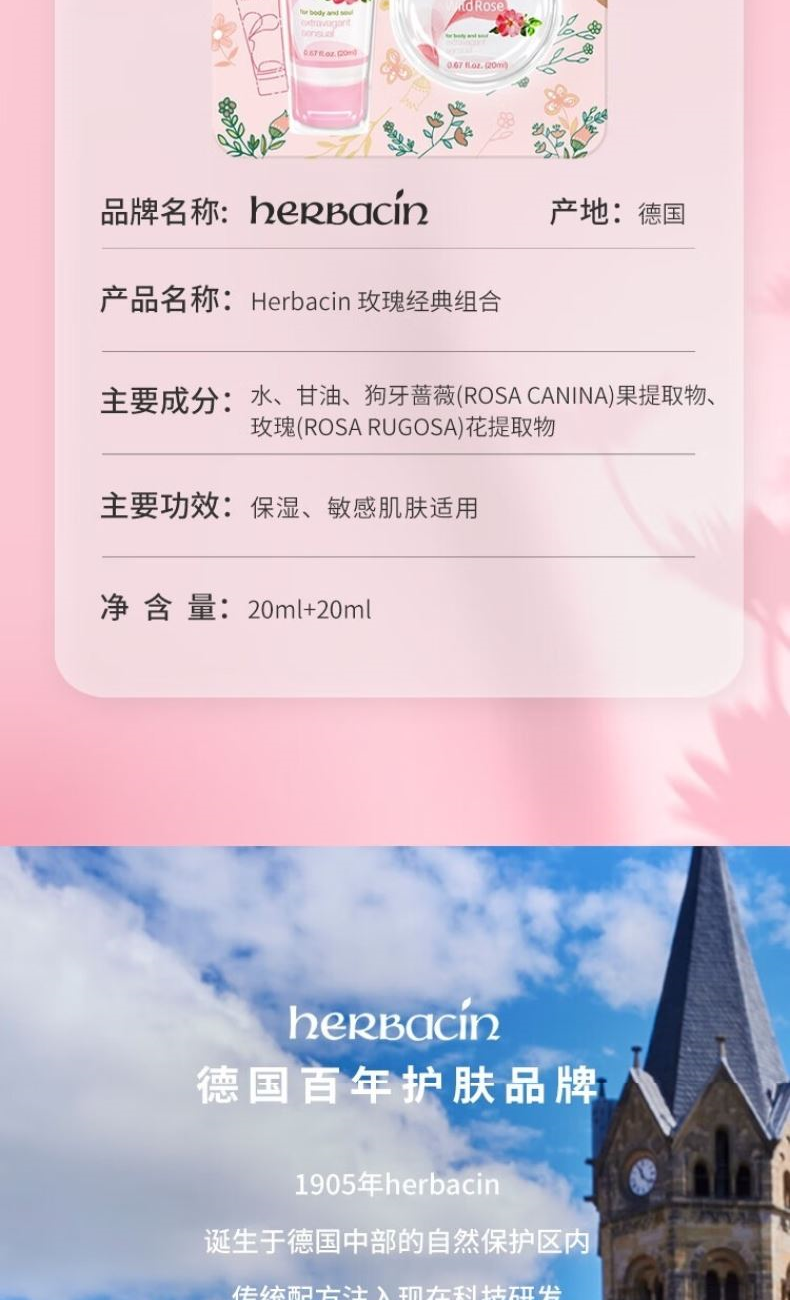原产地:德国 规格:玫瑰经典护手霜20ml、玫瑰经典护手霜20ml 功效:滋润手足、抚平粗糙、轻盈舒缓、补水防护、打造细化水嫩肌肤 保质期:4年 适合肤质:所有肌肤 礼盒尺寸:16*13.5cm 条形码:4013718981253