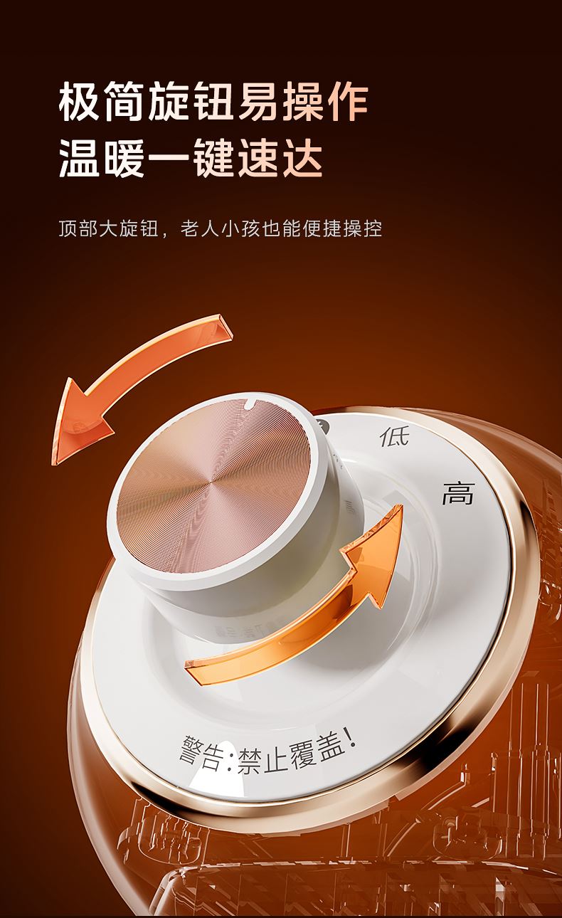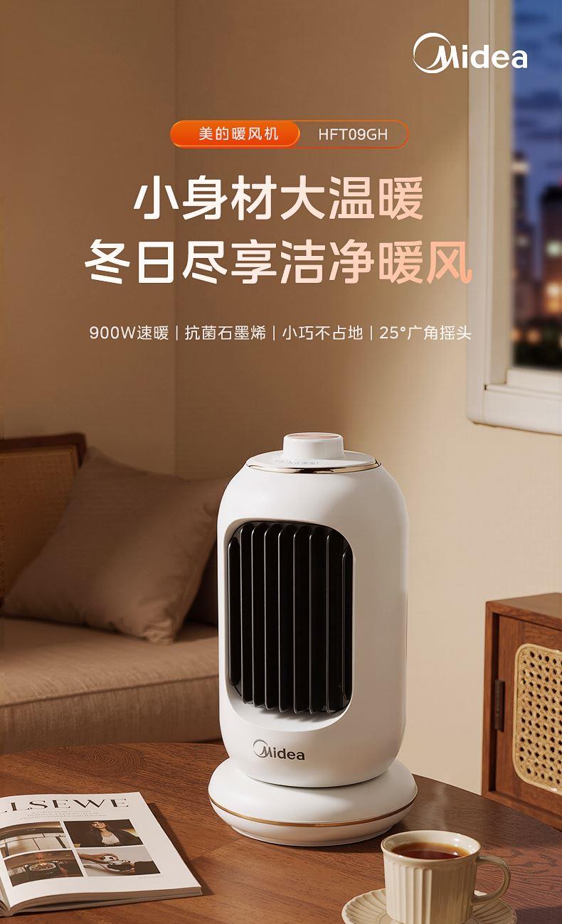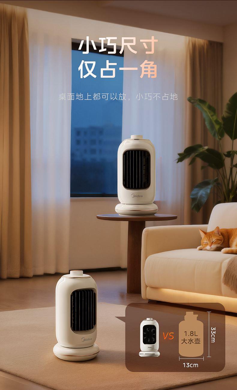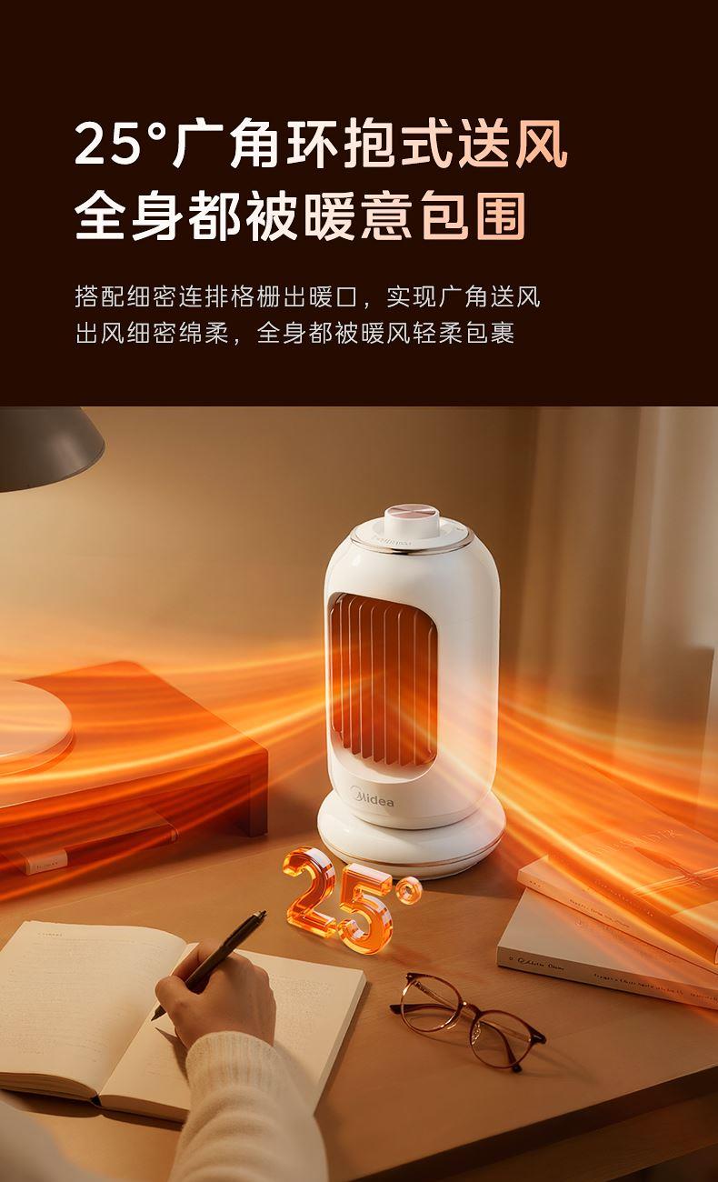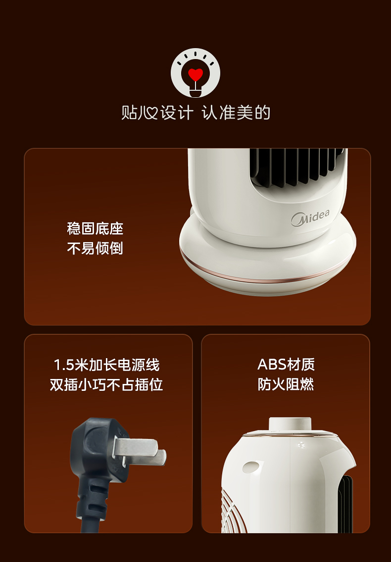 包装尺寸:140 x 140 x 265 mm 商品尺寸:127 x 127 x 233 mm 毛重:1.03 kg 【速热】核心搭载PTC陶瓷发热体,900W高效出暖,无明火,无亮光,开机3秒即出暖风,温暖无需等待; 【两挡可调】2挡暖风,暖意随心选; 【便捷移动】小巧机身,哪里需要拎哪里(办公、书房、浴室等场景); 【便捷操控】顶部机械式大旋钮操控,人性化设计; 【大范围取暖】左右摇头,广角度送暖;