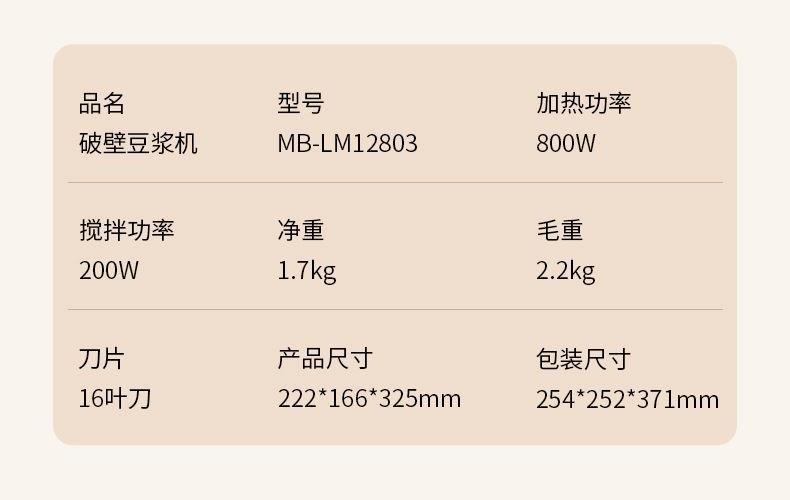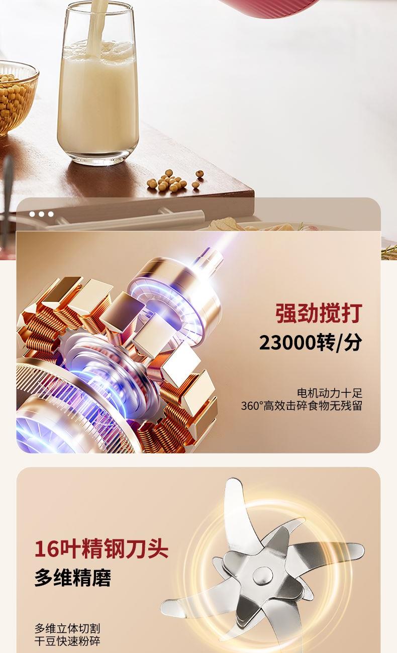 1. 1.2L大容量,可供1-6人使用。. 16叶精钢刀组,细腻无渣。