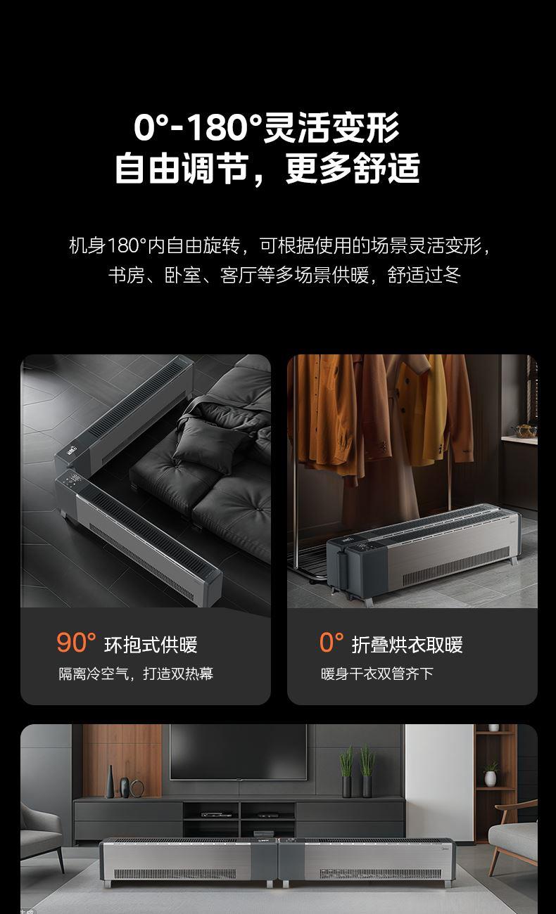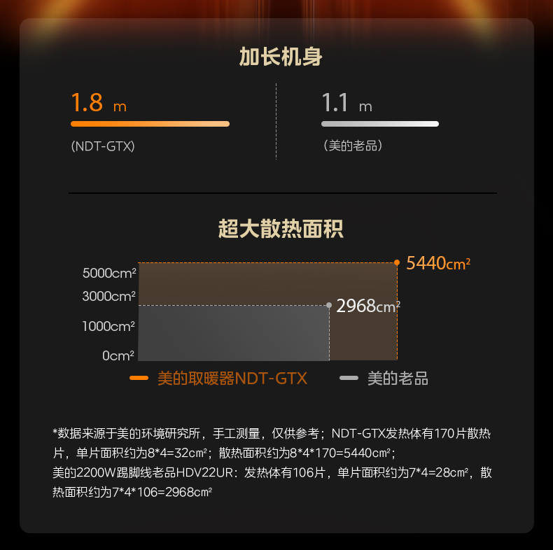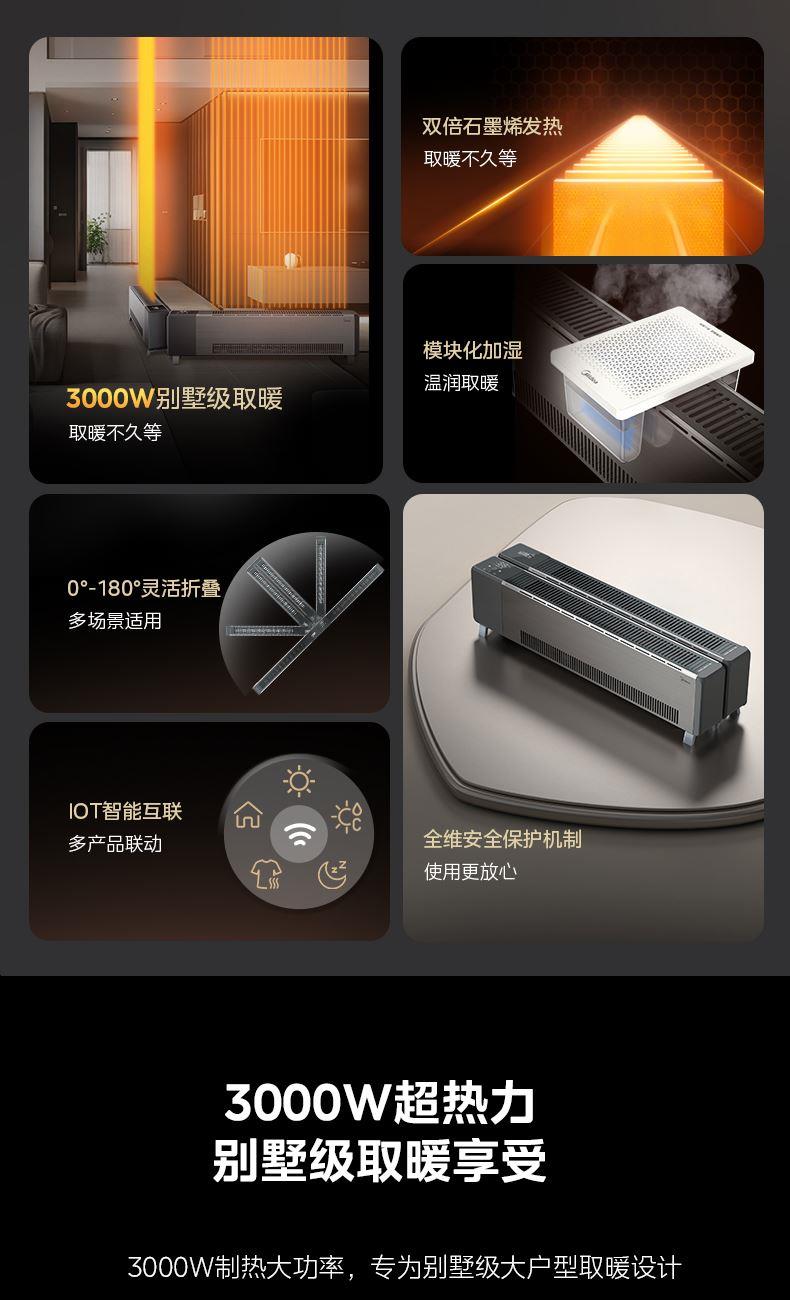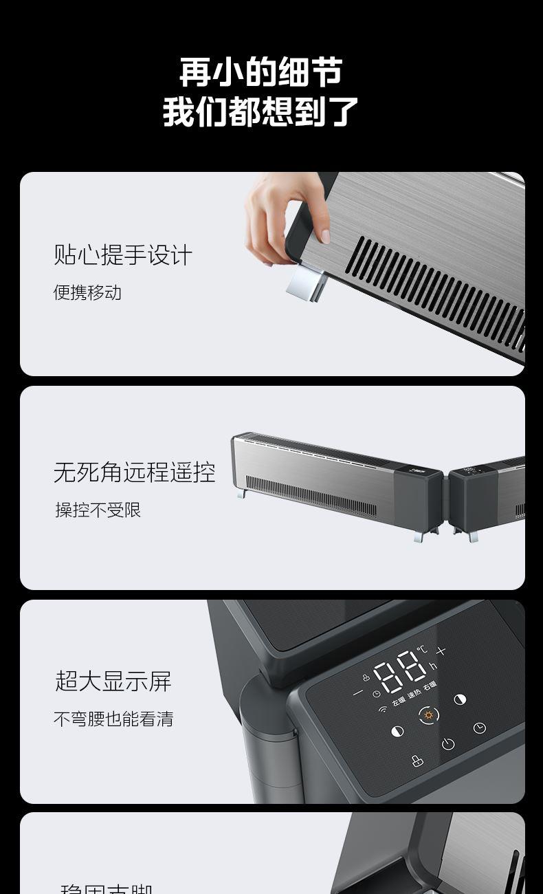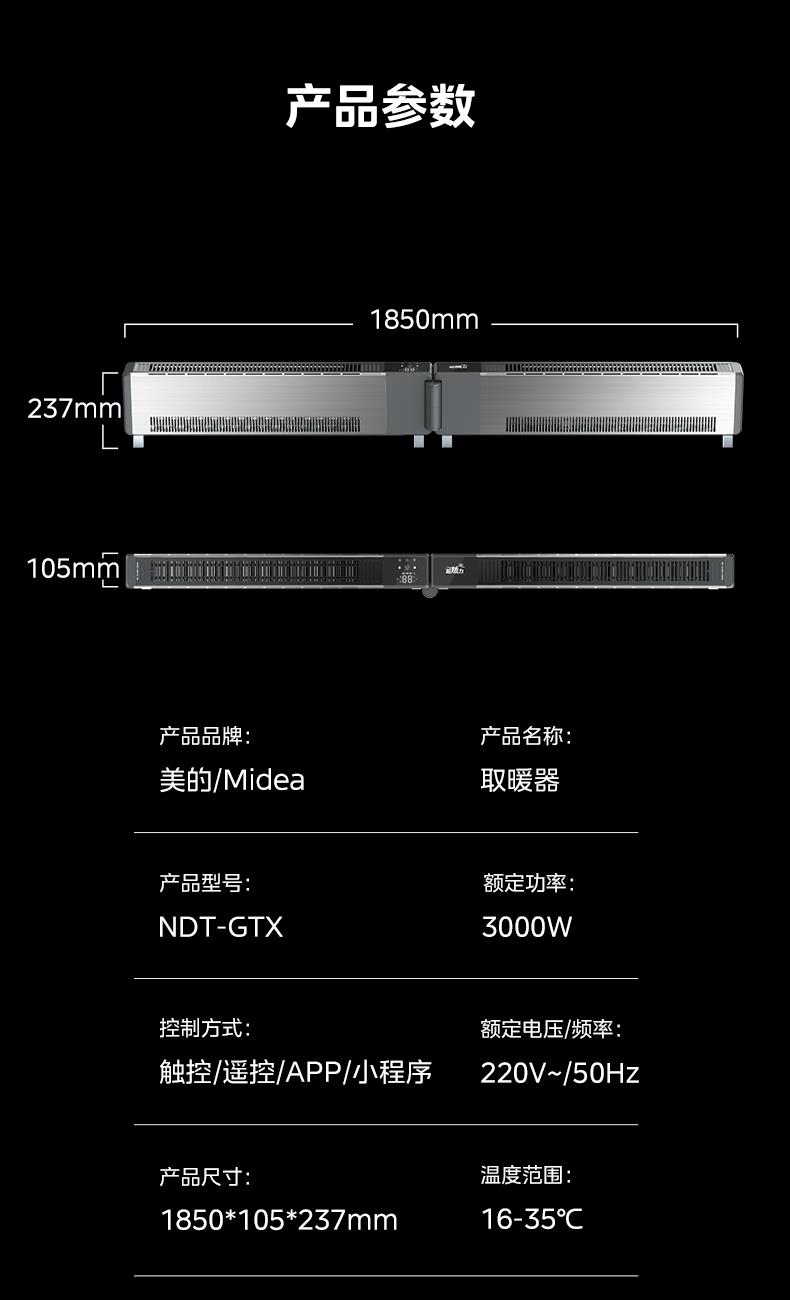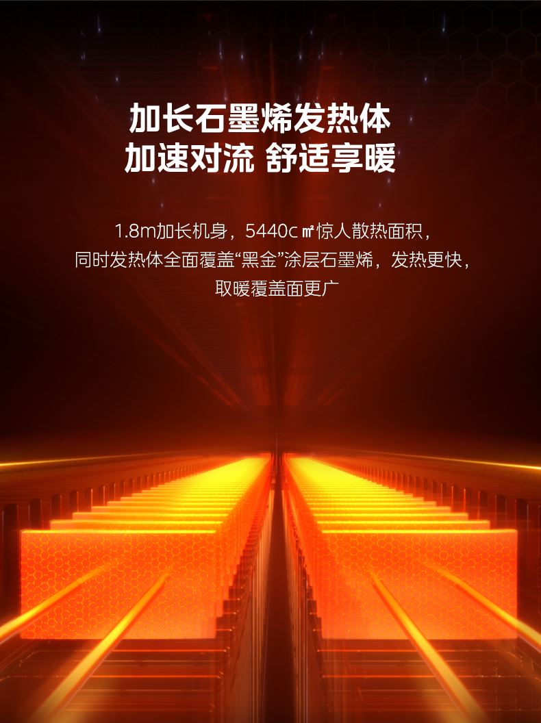包装尺寸:1049 x 348 x 338 mm 商品尺寸:1850 x 105 x 237 mm 毛重:9.2 kg 【超热力】 3000W大功率,客厅才够暖; 超长双核石墨烯发热体
