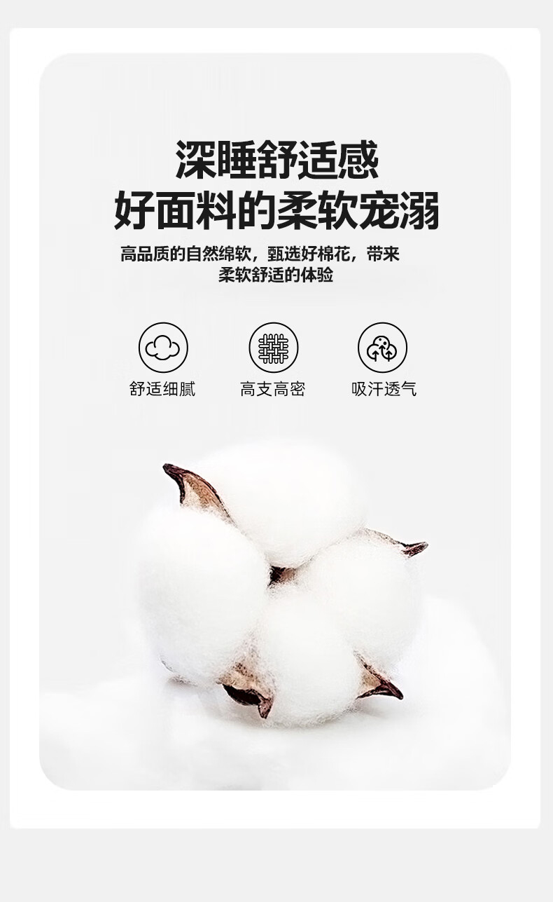 被套:200*230cm 床单:230*245cm 枕套:48*74cm*2 面料:新疆长绒棉 执行标准:GB/T22796-2021 安全类别:GB18401-2010 A类 1.臻选纯棉面料,印染工艺采用活性印染工艺,不起球,不褪色,极具柔软性,在纺纱过程中,增加了精致梳理的程序,疏去软短的纤维,剔除棉花种的杂质,以制造出平滑的纱线,让棉花更有韧性,使人干到柔软。2.纯棉纤维具有良好的保湿型,透气性能好,使用感觉温暖。