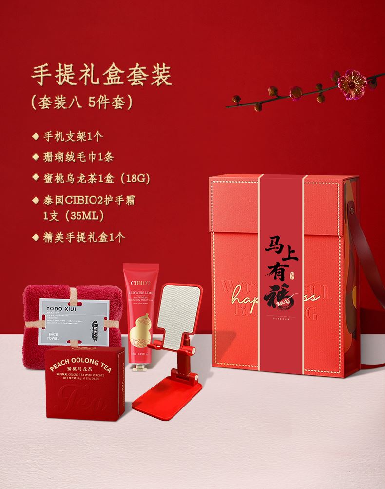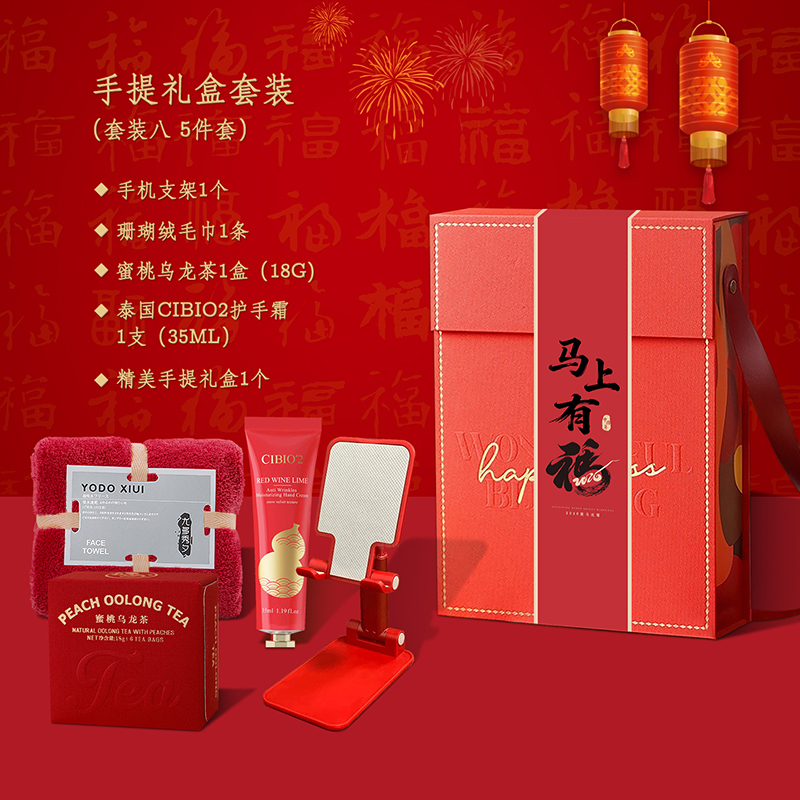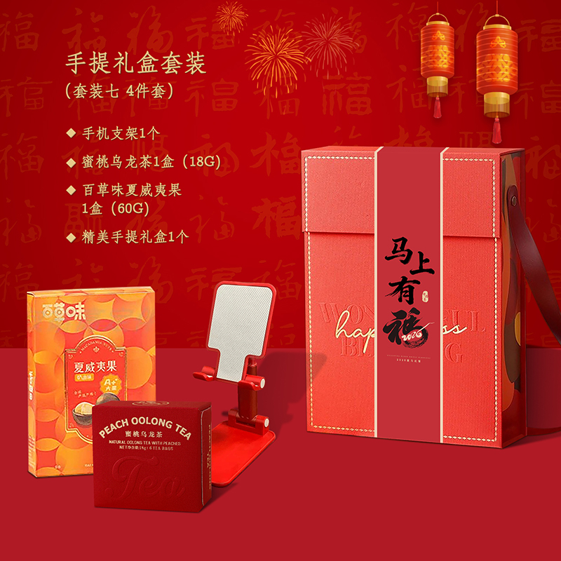1.注:商城报价对应首张主图款式! 其他套装参考细节图,费用另计! 2. 咨询下单请备注好产品信息! 3.首图款式产品明细:手提礼盒套装(套装六 4件套):手机支架1个、蜜桃乌龙茶1盒18g、福禄大吉香薰挂件1盒5片、精美手提礼盒1个